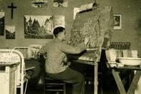 Von 1937-1939 war ich in Burlo, dann im Konvikt in Borken, um ein städtisches Gymnasium zu besuchen. Neben der Schule und den Studierzeiten spielte ich B-Klarinette und Viola. Ich hatte ein Einzelzimmer mit Staffelei und war verantwortlich für alles Künstlerische im Konvikt: Theaterkulissen, Krippenaufbau, Malen von Plakaten usw.